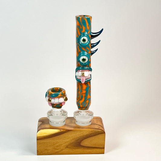 Leviathan Glass Orange and Teal Mouthpiece and 4-Hole Bowl Set – 18mm