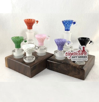 14mm 3 hole Honeycomb Slide w/ Mushroom Marble