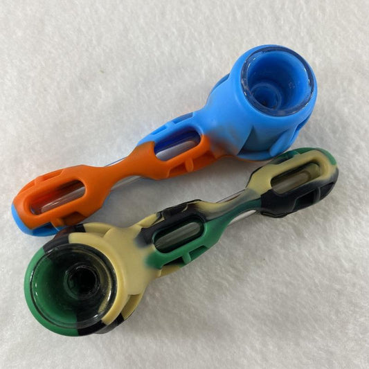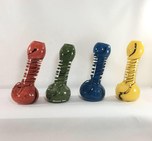 Red and Dichro Spiral Hand Pipe with Multi Holes in bowl.