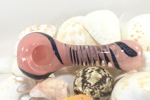 Pink and Dichro Spiral Hand Pipe with Multi Holes in bowl.