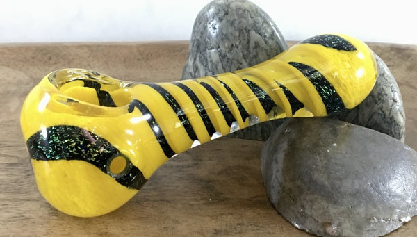 Yellow and Dichro Spiral Hand Pipe with Multi Holes in bowl.