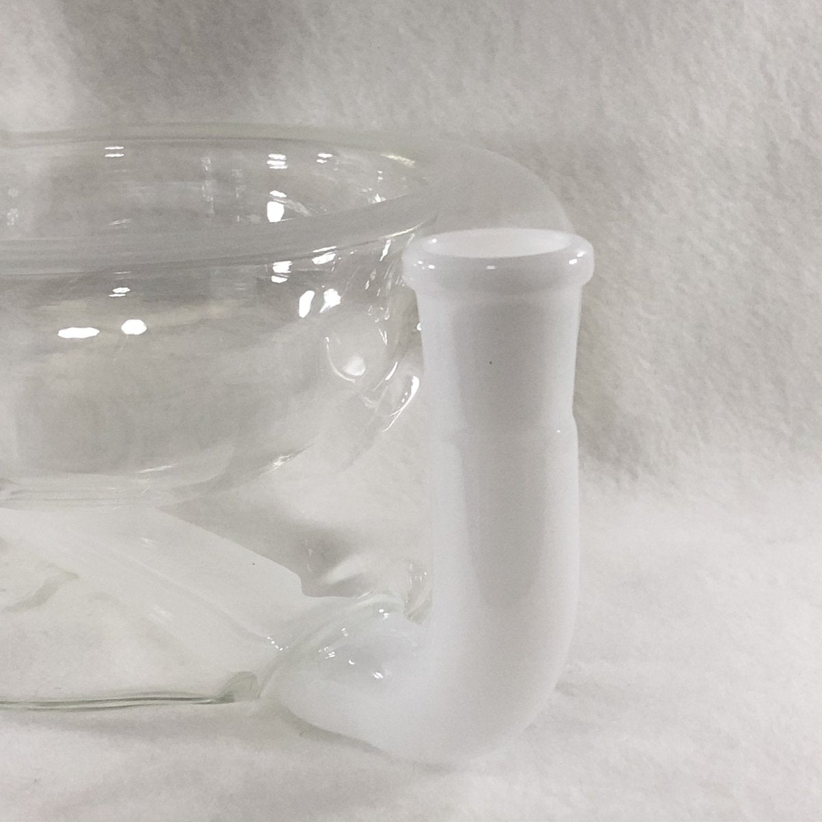 The Breakfast Bowl Pipe is expertly hand crafted with superior borosilicate glass. The eating bowl has a 2 cup volume to satisfy the biggest appetites. The downstem and mouthpiece connect directly to form an inner chamber for the smoke.