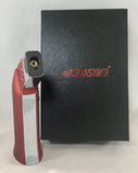 These are awesome! The red torches are refillable with butane and have a lock to prevent any unwanted starts. Empty, they weigh only 5.1 oz. Even the box they come in speaks of their quality. These are a must have.