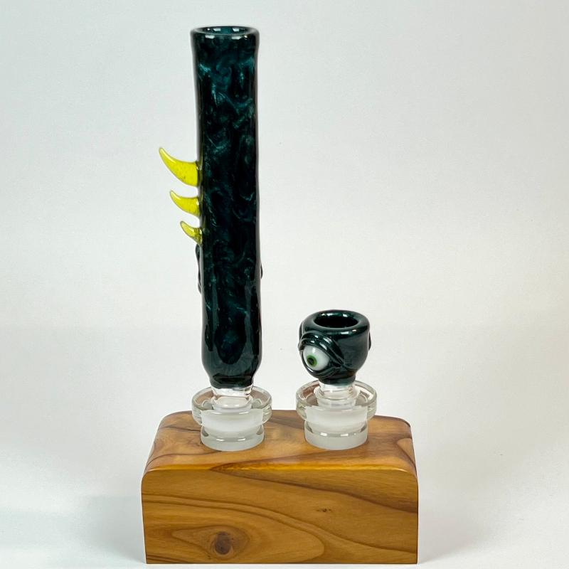 A true conversation starter, the Leviathan Glass Blue Marble with Pierced Tongue Mouthpiece and Bowl Set combines bold design with a touch of rebellious flair. Handcrafted from premium American-made glass, this set stands out with its stunning blue marble finish and fierce details, making it the perfect addition to any collection.