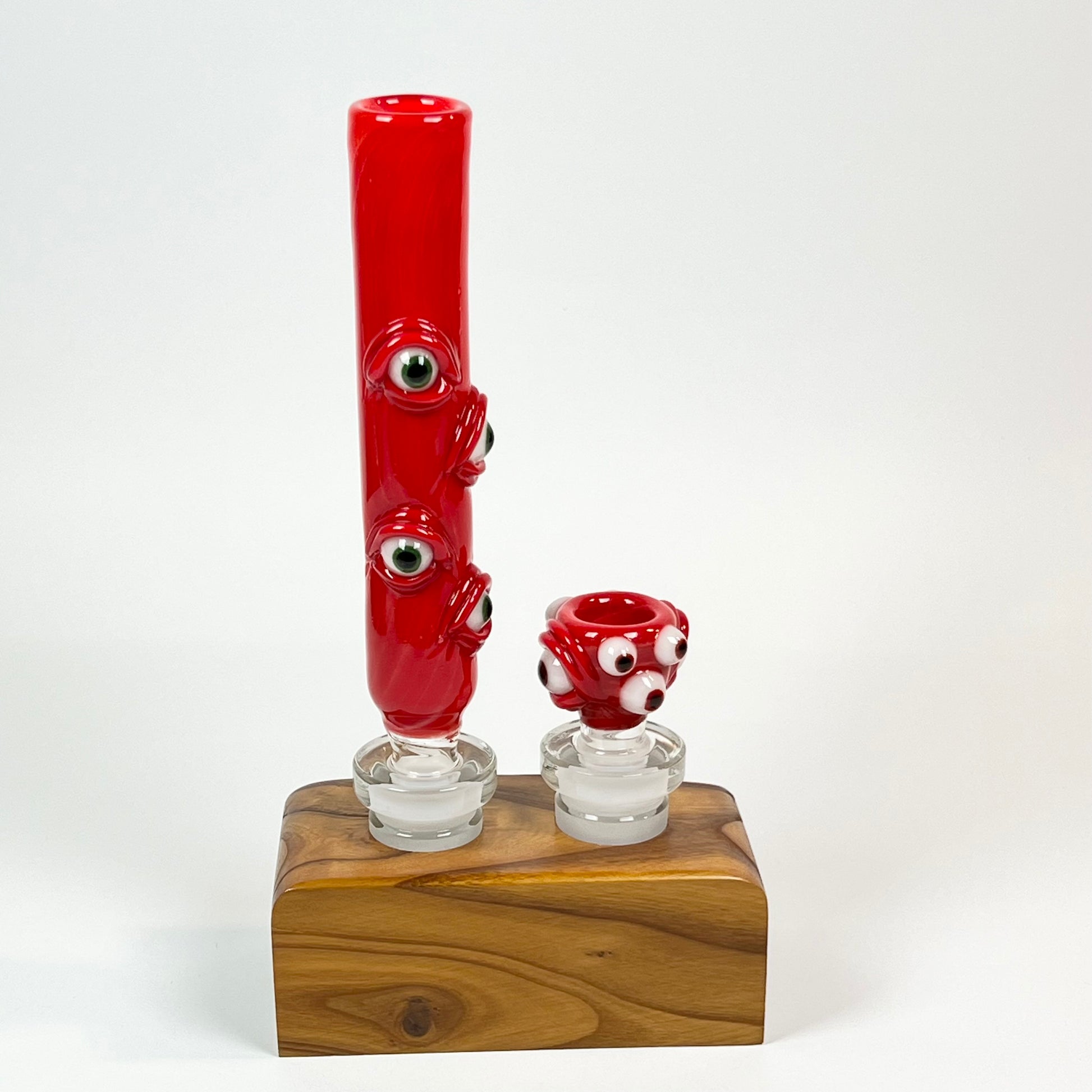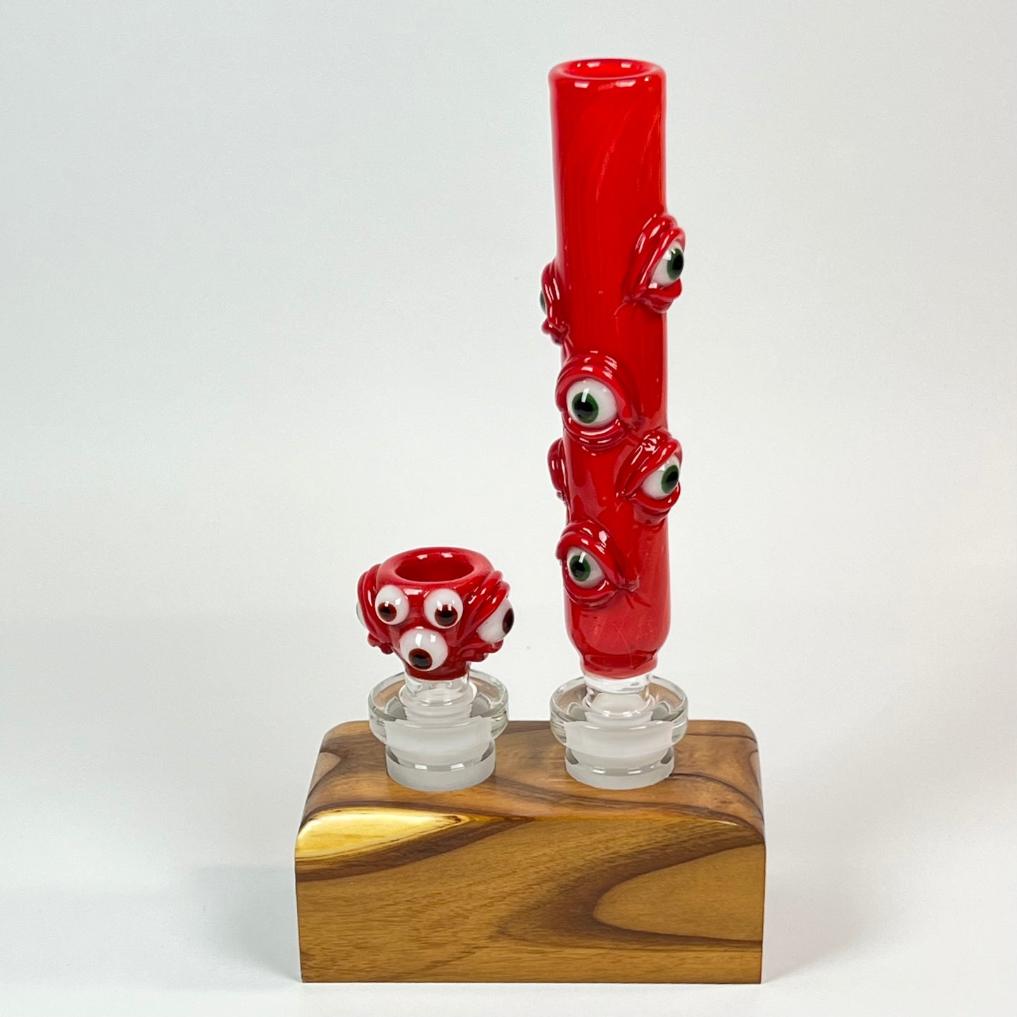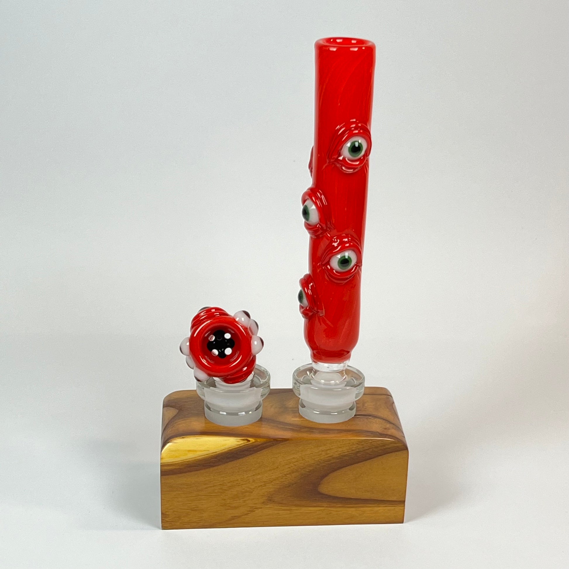 Dive into the extraordinary with the Leviathan Glass Red Mouthpiece and 4-Hole Slide Set—an eye-popping, otherworldly addition to your rig. Handcrafted in the USA, this set is designed for those who want their smoking accessories to stand out with a bold, unique flair.
