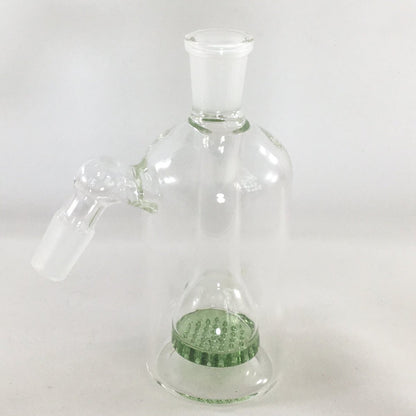 Add extra filtration and keep your pipe cleaner with our 45-degree armed Honeycomb Ashcatcher. Available in Blue or Green with 14mm joint. These handcrafted pieces are built to last. It's a great accessory option for any pipe and your Breakfast Bowl Collection.