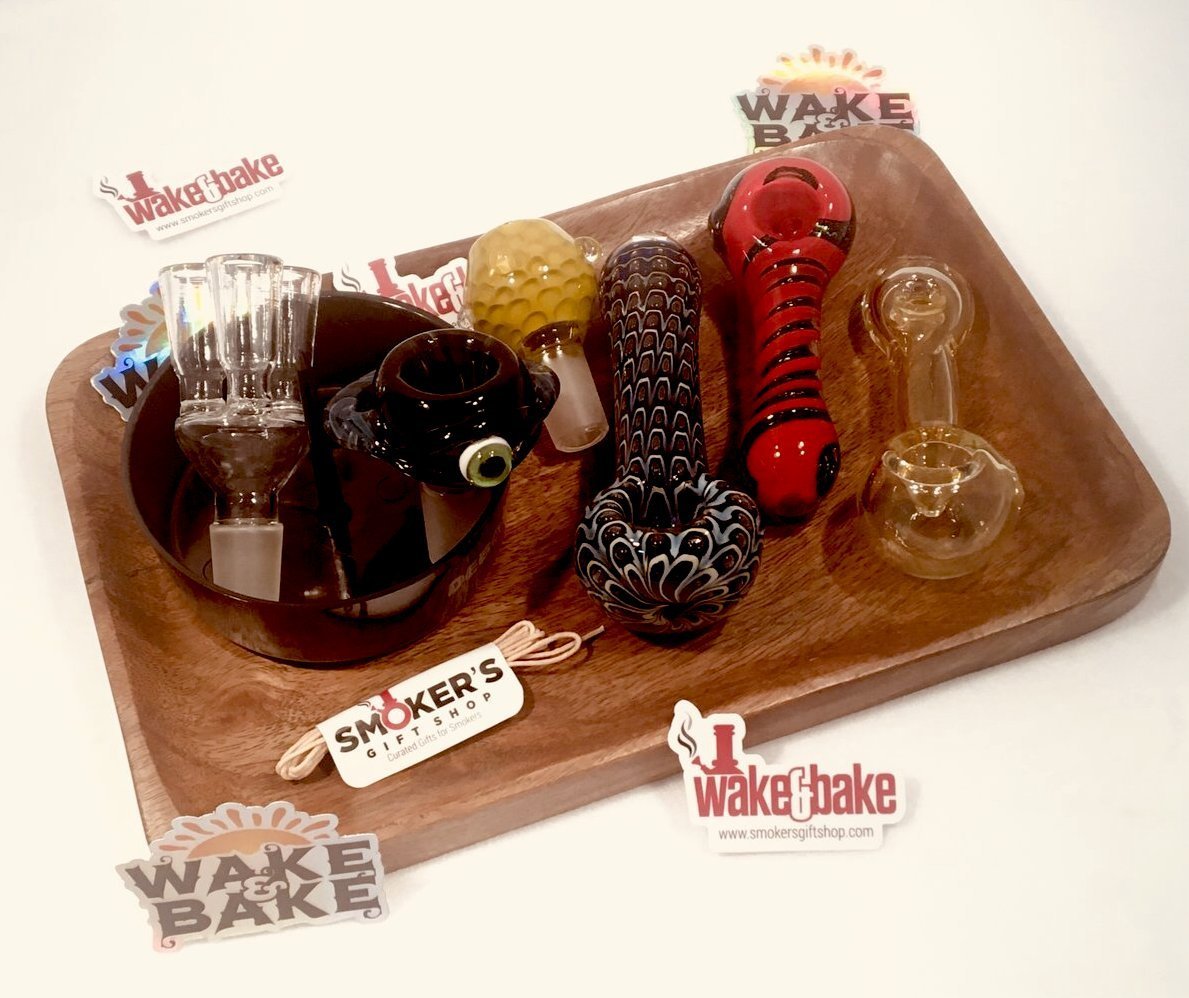 These sleek trays come in two sizes, 7in x 5in and 11in x 7in. Made from Mango Tree wood, they are the perfect accessory for any sesh. Small can fit hand pipes and the larger is big enough for you Beaker or Bowl.