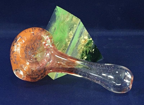 This clear pipe with its fritted red to orange bowl is a perfect way to spend and evening by the fire. Even the clear shaft is designed with sparkle. Made in the USA by Antonio Casale.