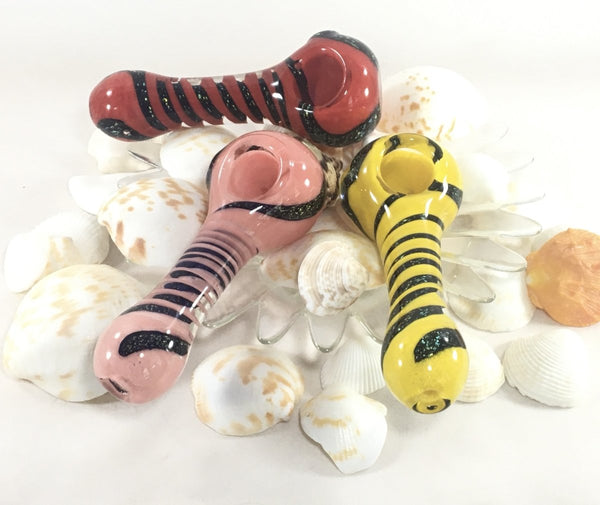 These Dichroic Spiral handpipes are approx 4" long and come in rich color options of Red, Yellow and Pink. Each pipe had 3 holes in the bowl to allow for improved air flow. This is the type of gift smoker's would shop for themselves.