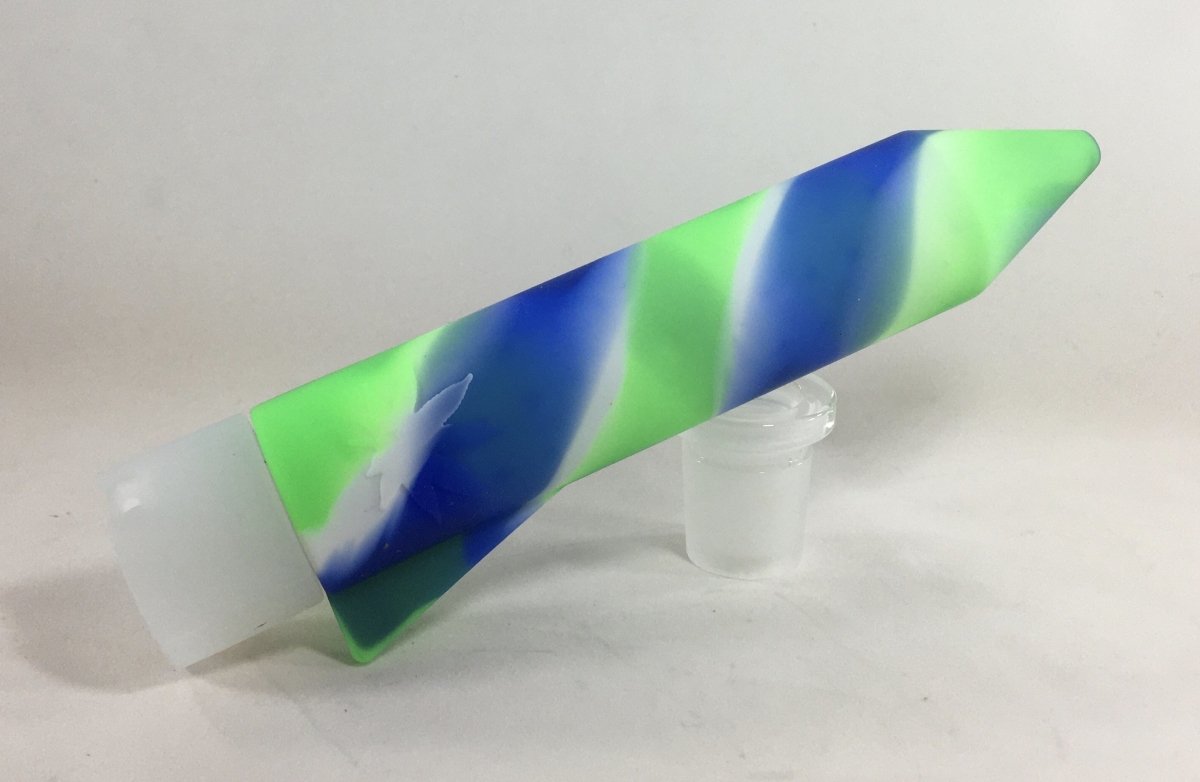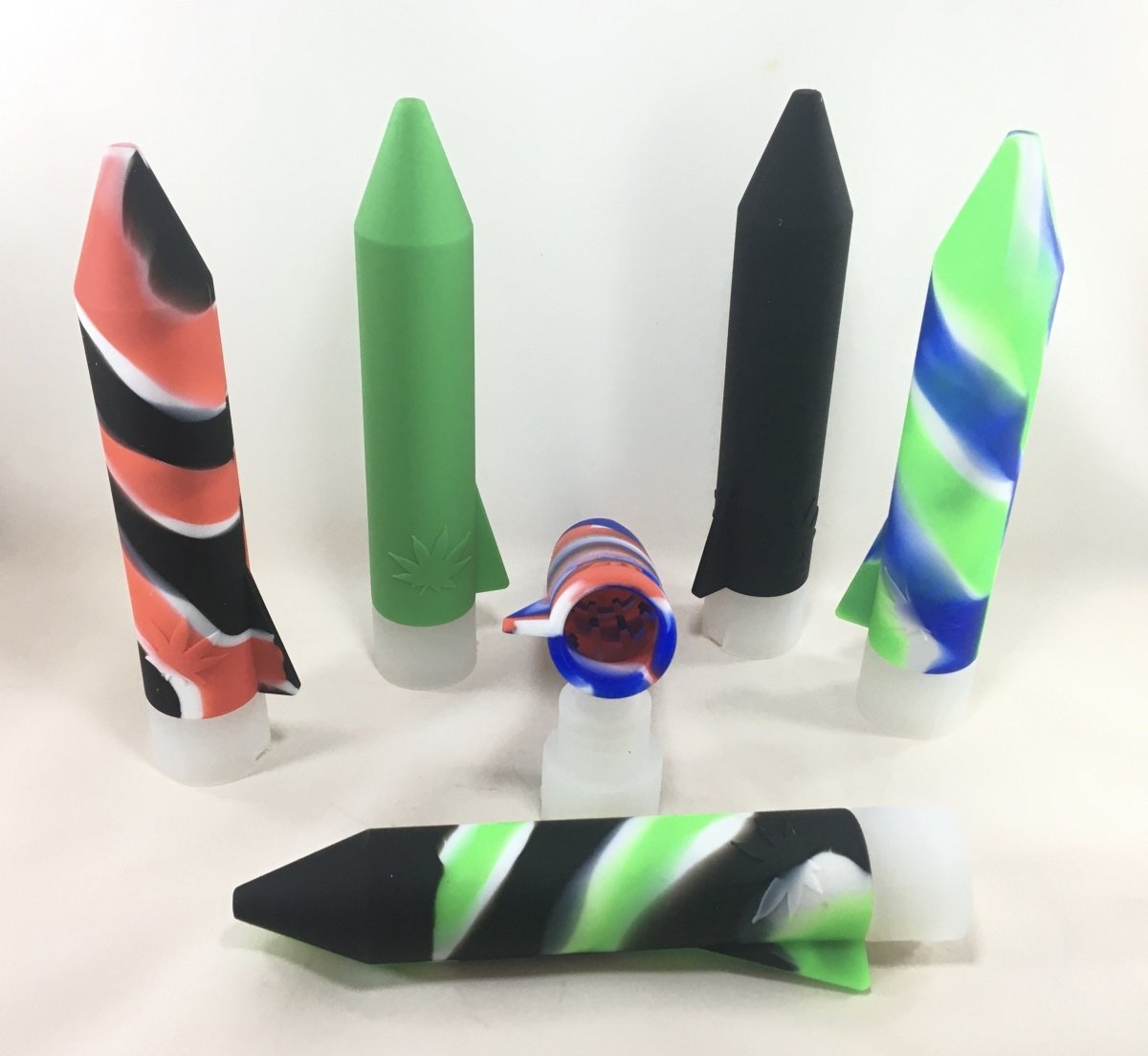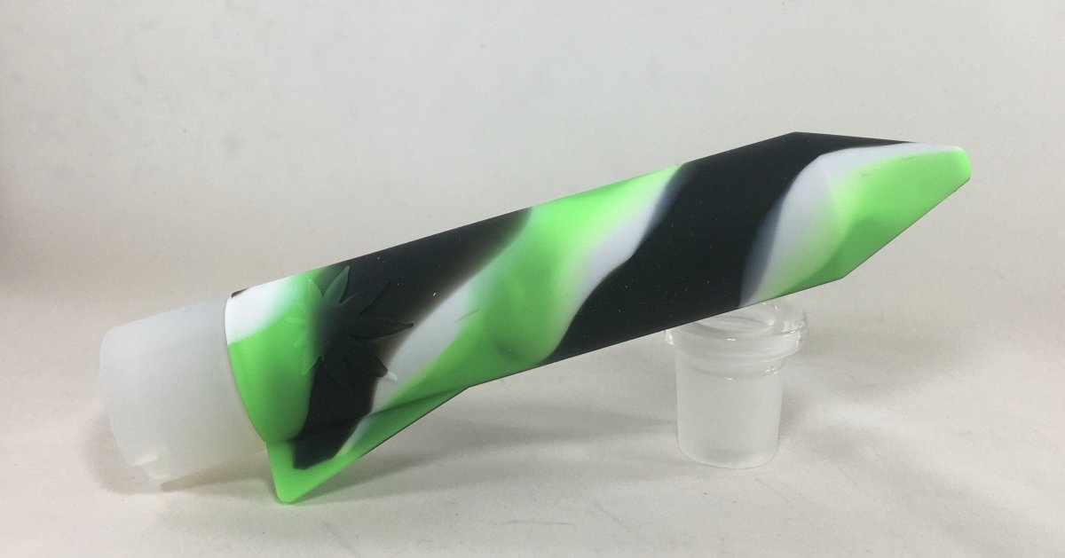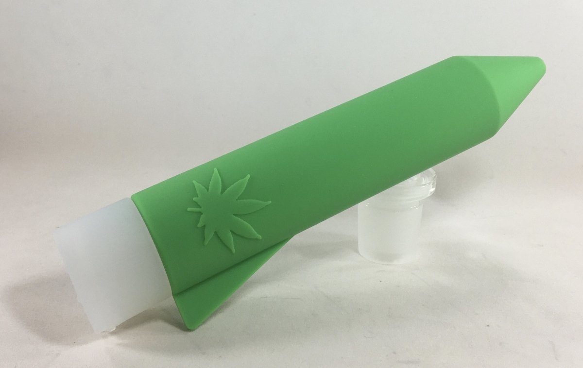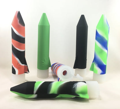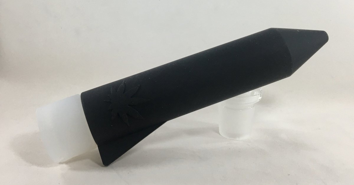 These silicone Rocket grinders are bigger then you think they are and are fun to use. You stick your product inside, where it has "fingers" to break down your material. The air tight lid with pour spout makes it easy to dispense a little at a time. We've tried lots of ways to store our goods. This is a unique on for on the go.