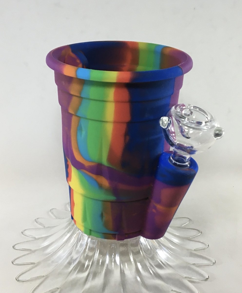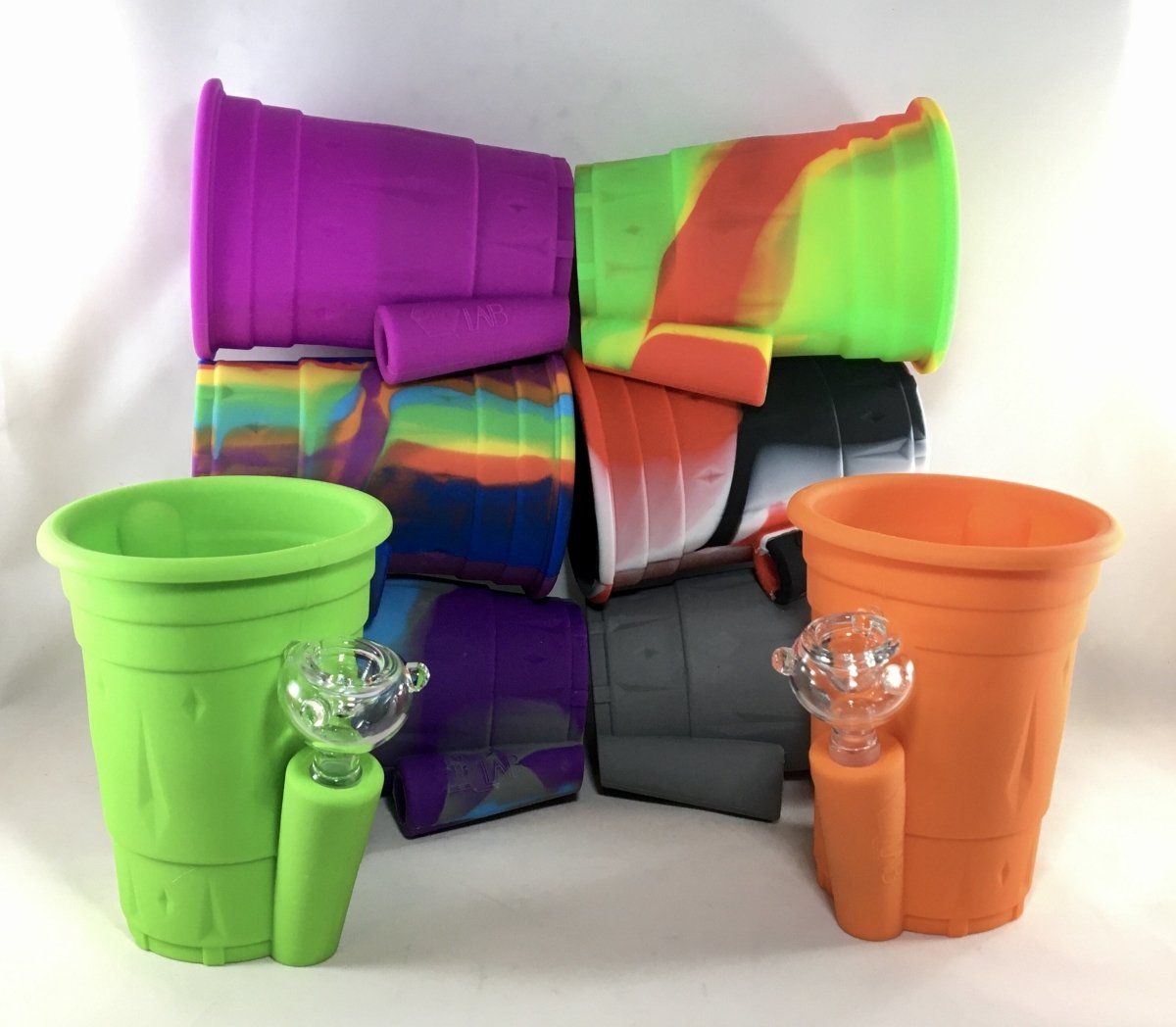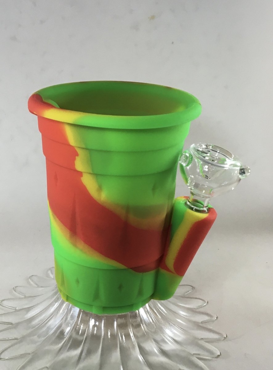 These fun silicone water pipes hold about 7fl oz for drinking and has a 14 mm slide for hitting. Secure divider keeps water and drink separate.