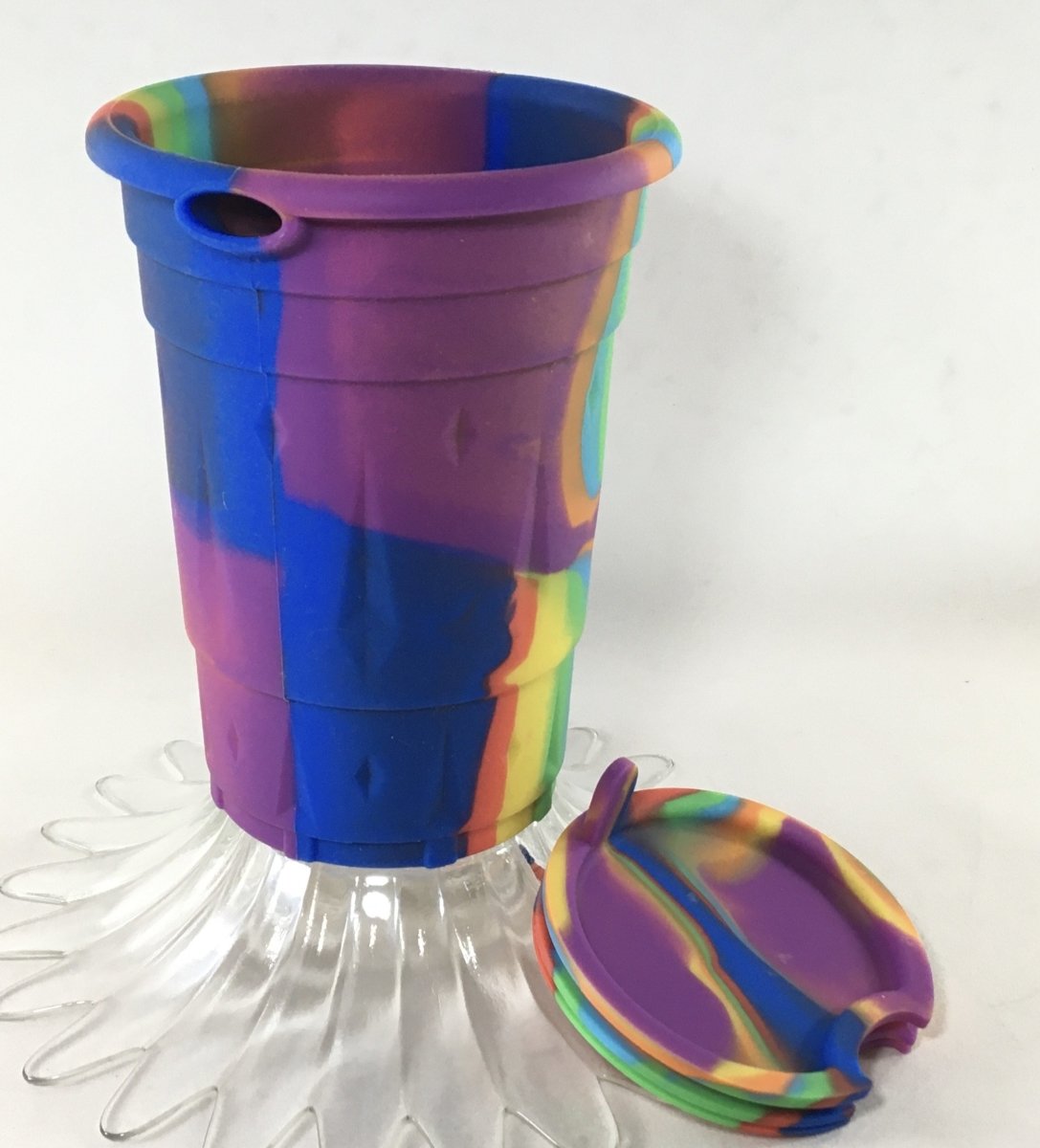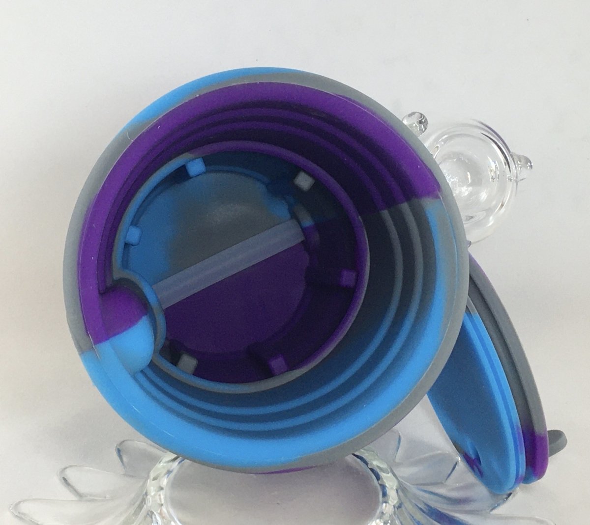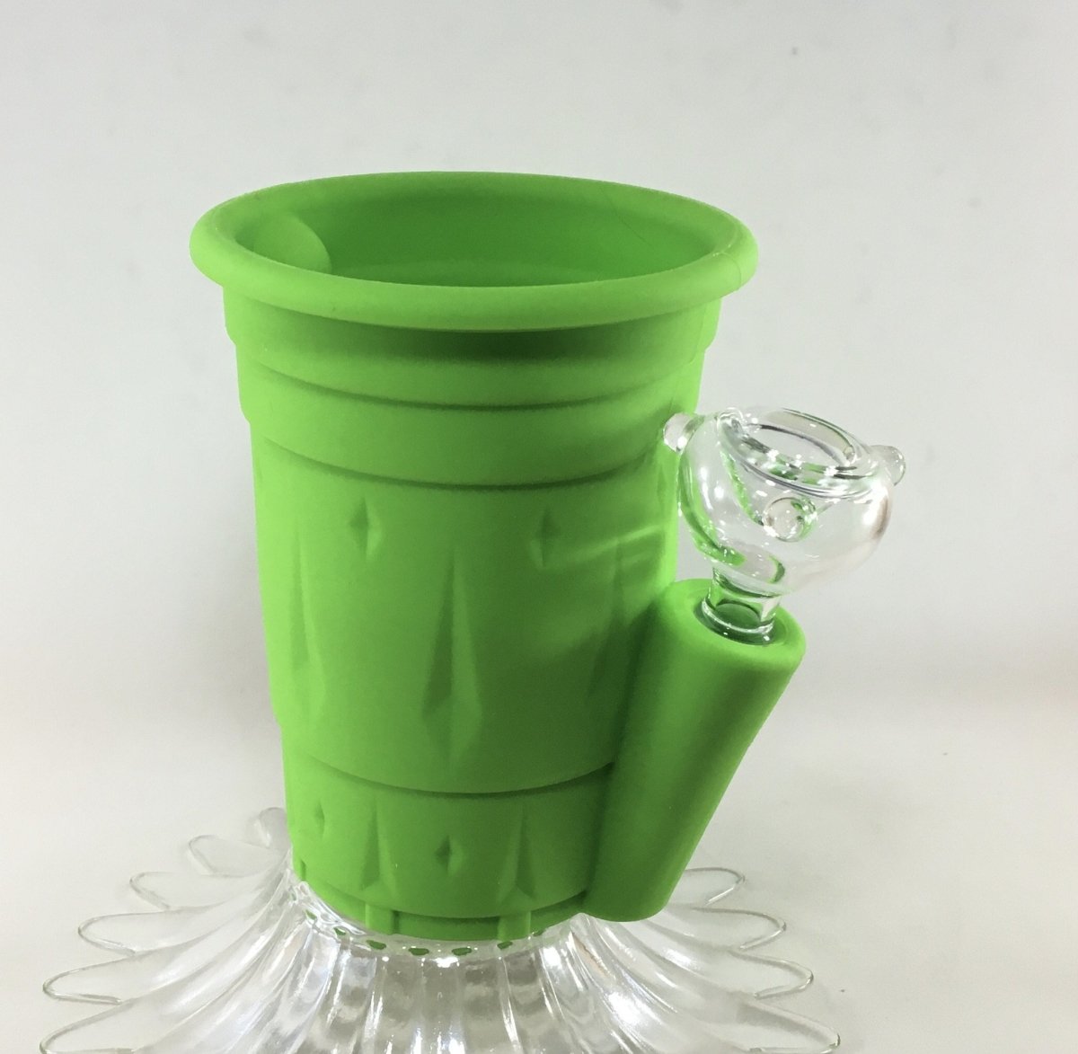 These fun silicone water pipes hold about 7fl oz for drinking and has a 14 mm slide for hitting. Secure divider keeps water and drink separate.