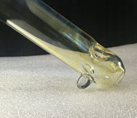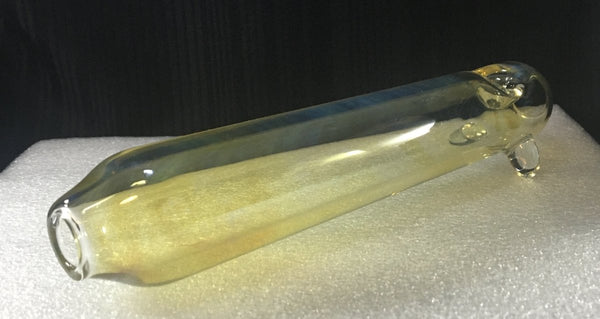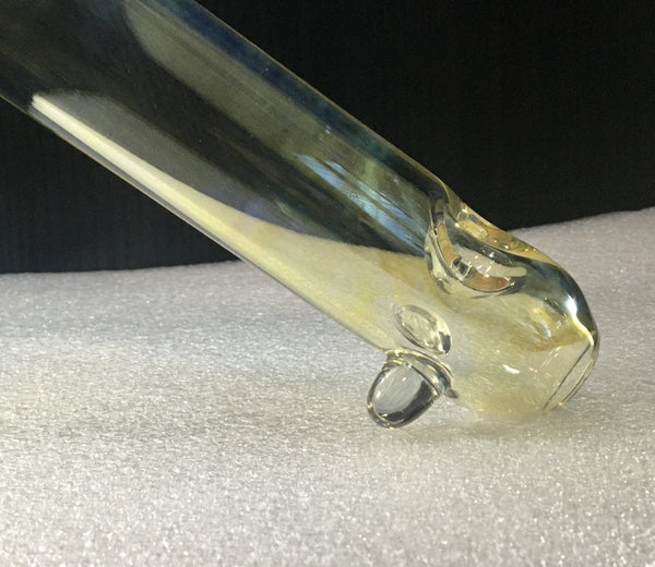 This unique hand pipe can pull a very big hit. Made in glass with silver fuming gives it a subtle finish. It’s a large pipe, but at 209g, it’s not too heavy. Just imagine it filled with smoke, a beautiful sight. Production glass, made in oregon.
