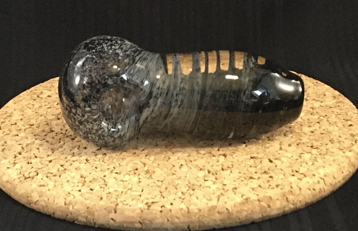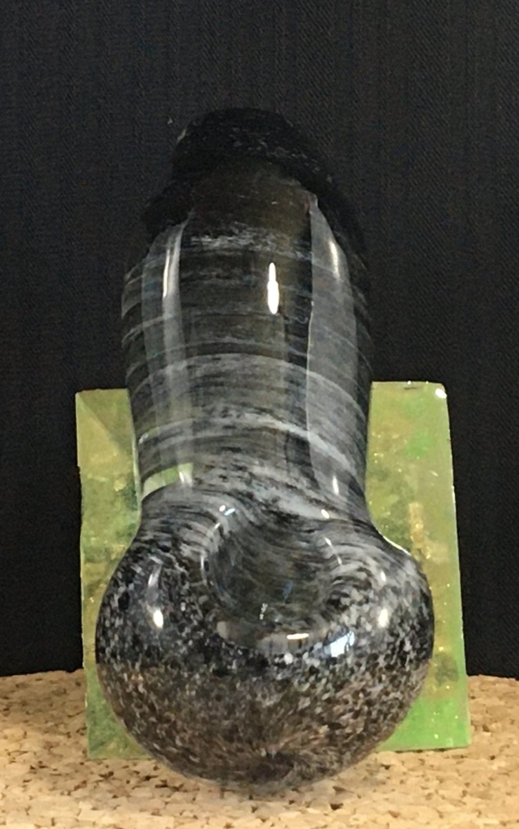 This beautiful pipe has a spiral which fades black to gray along the shaft. Made in Oregon This piece is sure to please every glass connoisseur on your list.