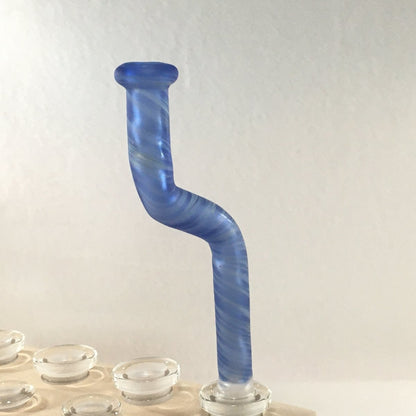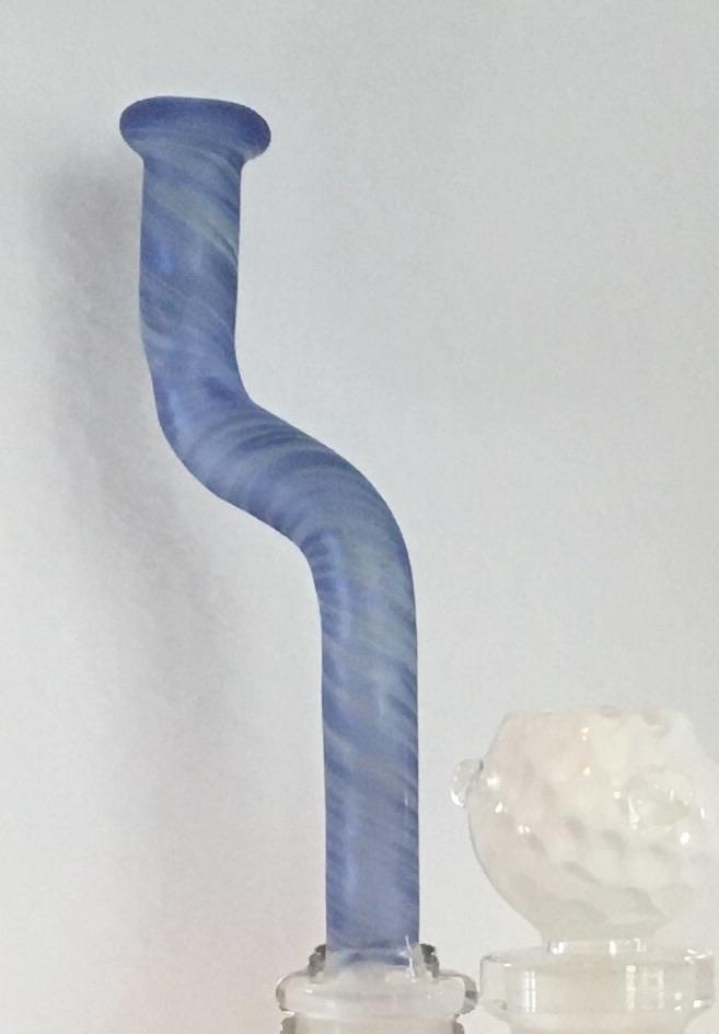 From our Signature Gift Series, this sandblasted mouthpiece is made with blue and white boro. It fits our classic Breakfast Bowl Pipe, Showerhead Beaker and Rig. (pipes sold separately) Have a 14mm joint? We have adapters!